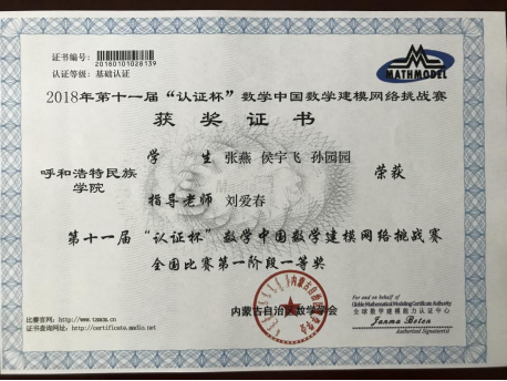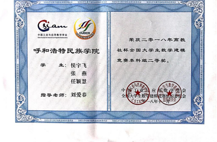 图5全国大学生数学建模竞赛二等奖
