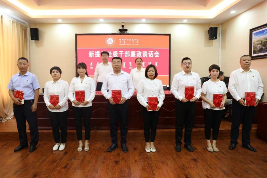 会上,校党委组织部、纪委监察专员办公室向新提任干部发放了《中国共产党章程》《中国共产党廉洁自律准则》《中国共产党纪律处分条例》《党性党风党纪教育读本》,引导新提任处级干部勤读书、读好书、读廉书,不断增强政治意识和政治规矩,提高拒腐防变能力,自觉养成廉洁修身、廉洁从业的良好行为。