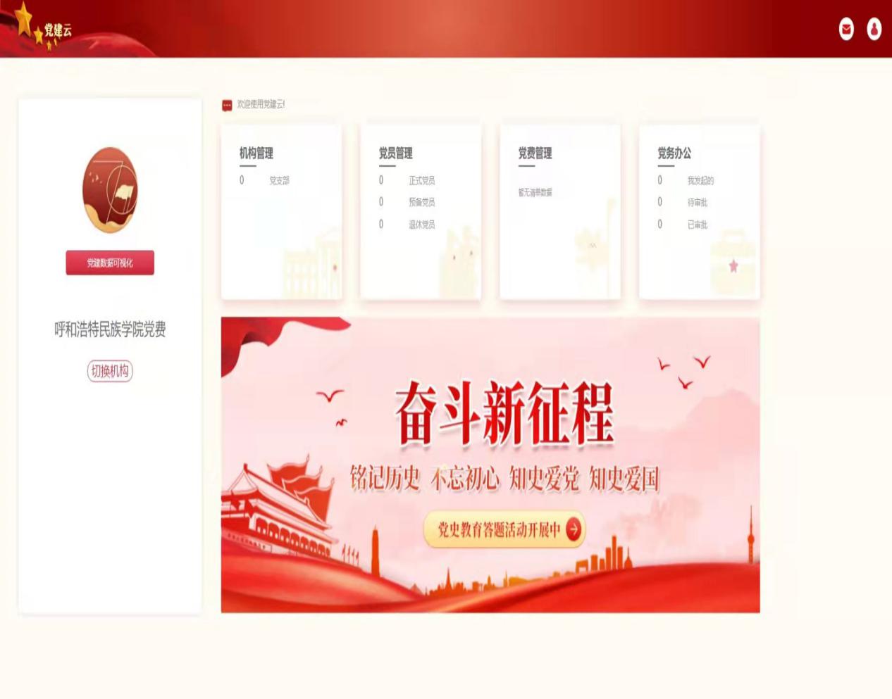 智慧党建,推动高效便捷。将“互联网+党建”项目与“我为师生办实事”活动有机结合,有效利用学校合作银行的党建云平台,实现了党建数据实时可视化、党建工作全流程信息化、党组织党员考核数据化、党建服务多元化、党建规定动作流程化、数据报表统计智能化。嵌入“党费通”党费收缴链接,即将开始试运行,让党员通过手机微信就可以轻松缴纳党费。
