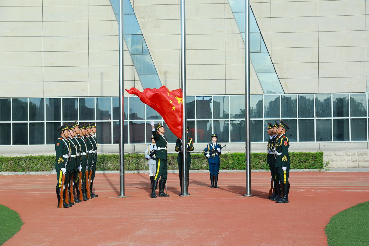 当日上午7时整,国旗护卫队庄严出旗,护旗手们迈着矫健、整齐的步伐护卫着国旗走进场地,在雄壮的国歌声中,鲜艳的五星红旗冉冉升起。肃穆庄严的仪式感染着在场的每一个人。