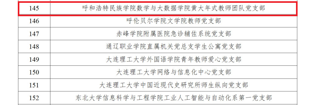 近日,教育部公布第二批新时代高校党建示范创建和质量创优工作验收结果,米乐官网数学与大数据学院黄大年式教师团队党支部顺利通过“全国党建工作样板支部”验收工作。