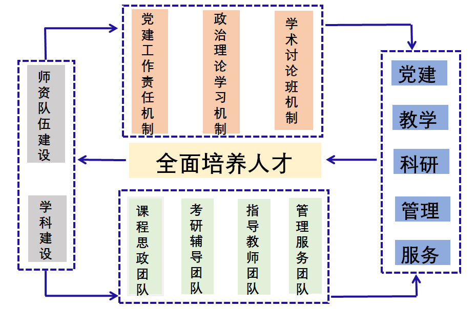 自2020年入选教育部“全国党建工作样板支部”创建单位以来,数学与大数据学院黄大年式教师团队党支部充分发挥基层党组织的战斗堡垒作用,采取 “12345”工作模式——以“全面培养人才”为中心,强化师资队伍和学科建设,以制度建设为依托,制定党建工作责任机制、政治理论学习机制、学术讨论班机制,组建课程思政团队、考研辅导团队、指导教师团队和管理服务团队,做到以党建引领为核心,实现教学、科研、管理、服务方面全面提升。