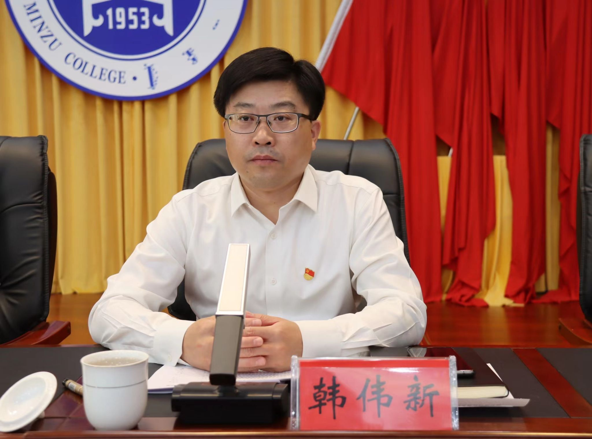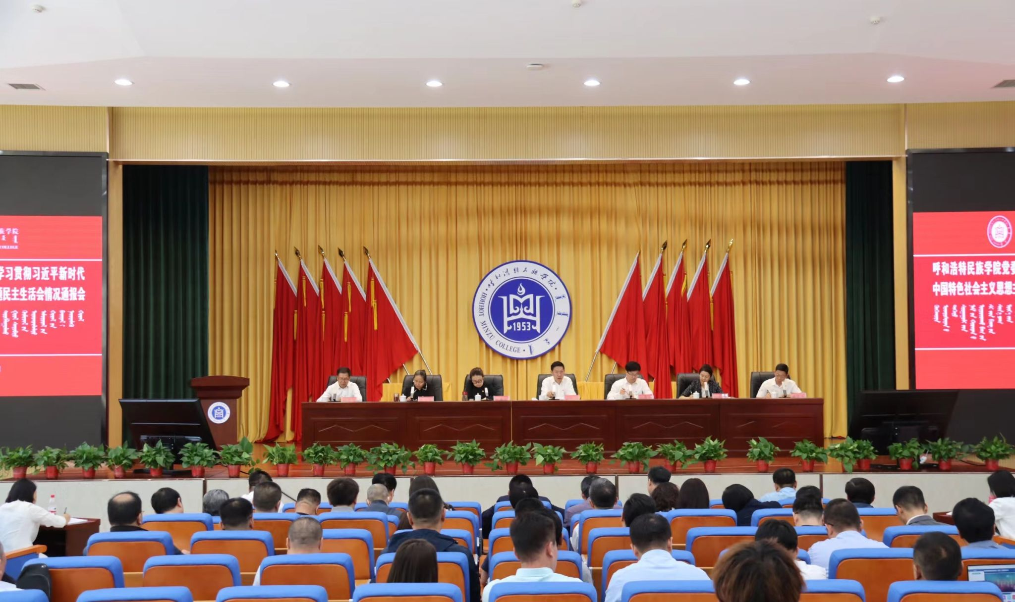 9月19日,校党委领导班子学习贯彻习近平新时代中国特色社会主义思想主题教育专题民主生活会情况通报会在学术报告厅举行。党委书记刘九万主持会议并讲话。党委副书记、校长韩伟新出席会议并讲话。全体校领导出席会议,全校副处级以上干部,党支部书记、离退休干部、一线教师、学生代表参加会议。
