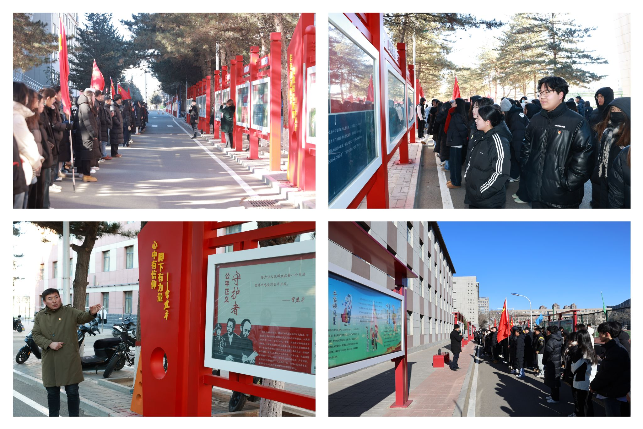 上午11点,在时代楷模文化长廊处开展了“行走的党课”第三站活动。“一个有希望的民族不能没有英雄,一个有前途的国家不能没有先锋。英雄是国家历史的重要体现,也是民族精神的重要来源。学校十分重视榜样育人工作,在全国高校中率先设立时代楷模文化长廊……长廊由103块橱窗组成,展示了85位时代楷模个人和18个时代楷模集体的事迹成就和卓越风采……时代楷模身上的民族精神、时代精神,是凝心聚力的兴国之魂、强国之魄,他们用最朴实的个人故事,讲述了爱国报国的宏大主题……我们要学习时代楷模胸怀祖国、服务人民、矢志坚守、赤心报国的精神,学习时代楷模艰苦朴素、清廉自守、甘为人梯、奖掖后学的精神,学习时代楷模求真务实、开拓创新、勇攀高峰、敢为人先的精神,要提高站位,建功立业新时代……”吴阿古拉给预备党员们讲解时说到。大家认真聆听讲解,仔细观看每一扇橱窗、每一幅图片和每一段文字记载,感受到了时代楷模们的实践精神、奉献精神和创新精神,也对他们的品质和事迹有了更深的认识与体会。