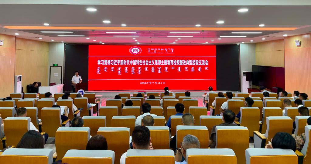 7月22日,学校召开学习贯彻习近平新时代中国特色社会主义思想主题教育检视整改典型经验交流会。校党委书记刘九万,校党委副书记、校长韩伟新,校纪委书记、监察专员王冬梅出席会议,全校处级干部参加会议。会议由校党委委员、组织部部长吴阿古拉主持。